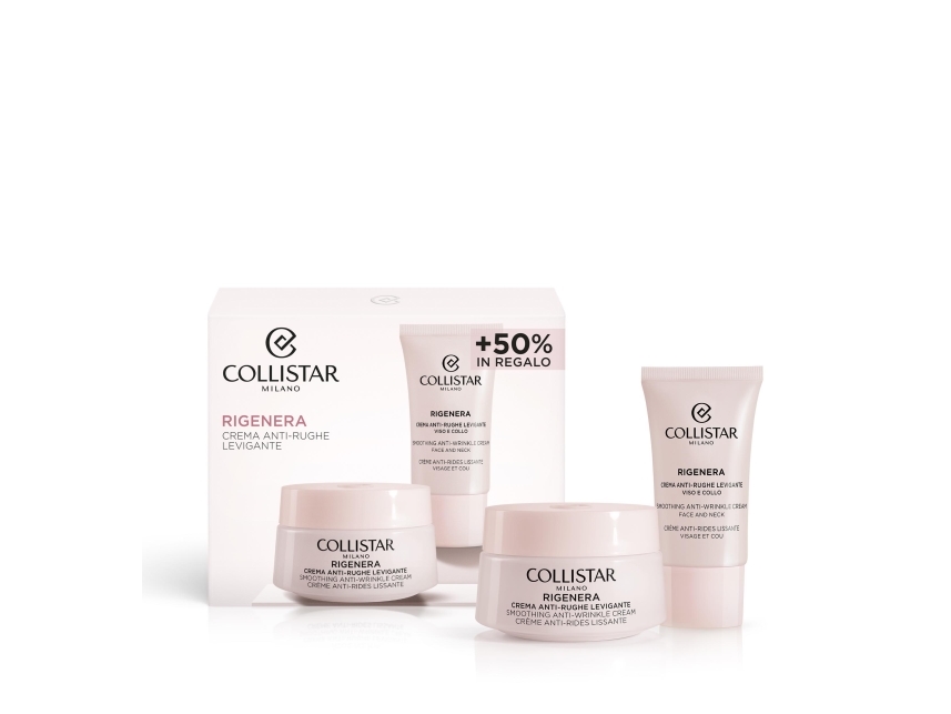 Collistar Set Rigenera Smoothing Anti Wrinkle Cream er en effektiv løsning mod fine linjer og rynker. Denne creme er designet til både ansigt og hals og giver en glat og ungdommelig hud.