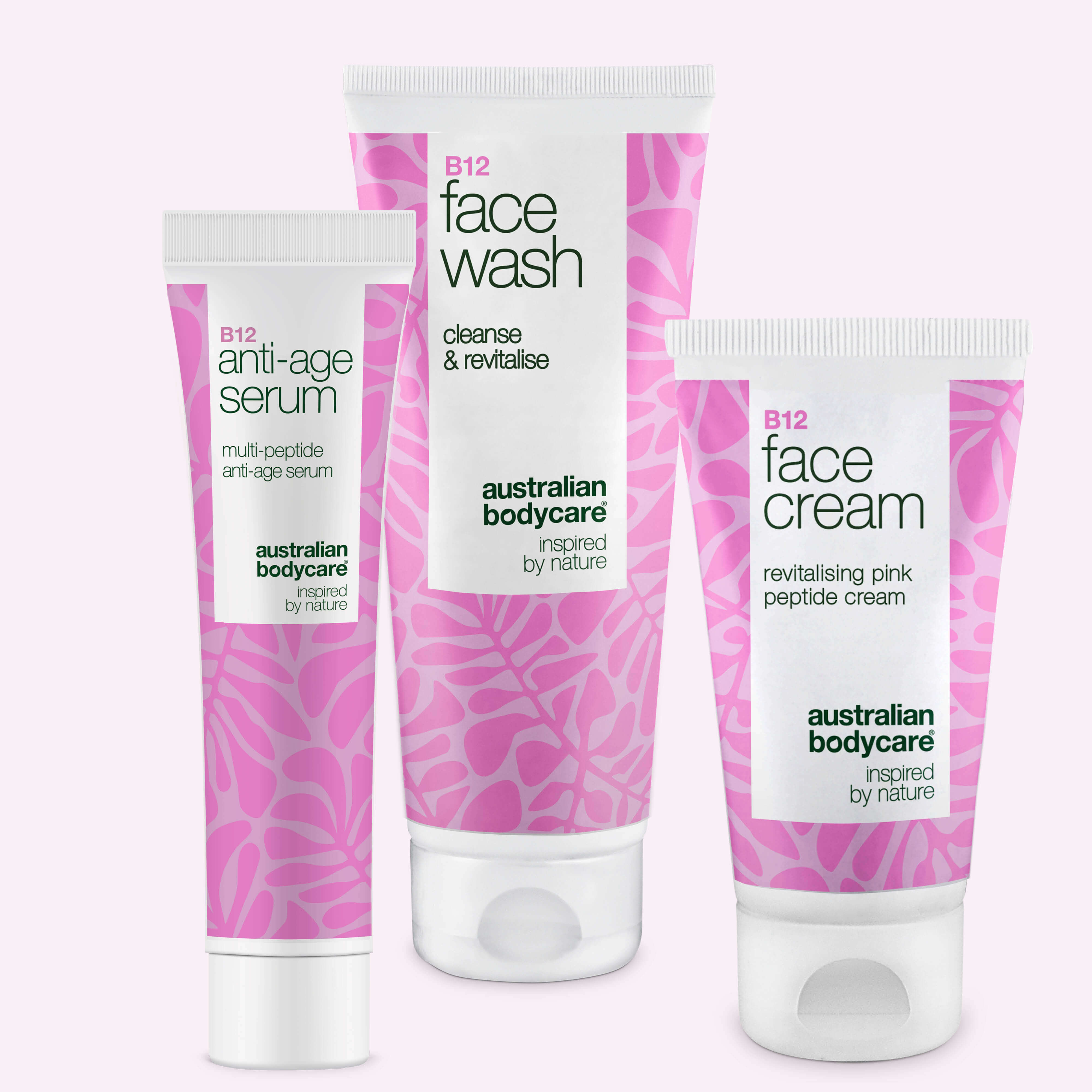 Eksklusivt B12-hudplejesæt til moden hud. Der inkluderer ansigtsrens. Serum og ansigtscreme. Dette sæt er designet til, at genoplive og styrke huden., Så den fremstår mere strålende og fast.