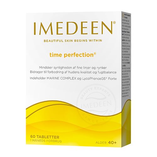 Imedeen Time Perfection Tab er en innovativ løsning til hudpleje. Der arbejder indefra for, at forbedre din hud. Dette kosttilskud mindsker synligheden af fine linjer og rynker. Hvilket giver en mere ungdommelig teint.